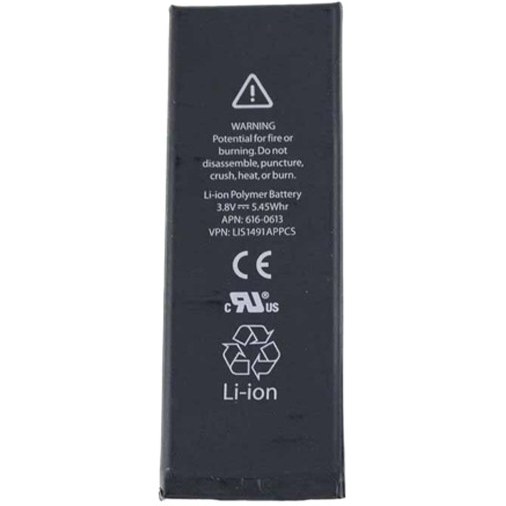 باتری آیفون 5 یک باتری لیتیوم-یونی با ظرفیت حدود 1440 میلیآمپر ساعت (mAh) و ولتاژ 3.8 ولت است. این باتری بهصورت داخلی (Internal) طراحی شده و توسط کاربر بهراحتی قابل تعویض نیست، بلکه باید توسط تعمیرکار یا با ابزار مخصوص باز و جایگزین شود.